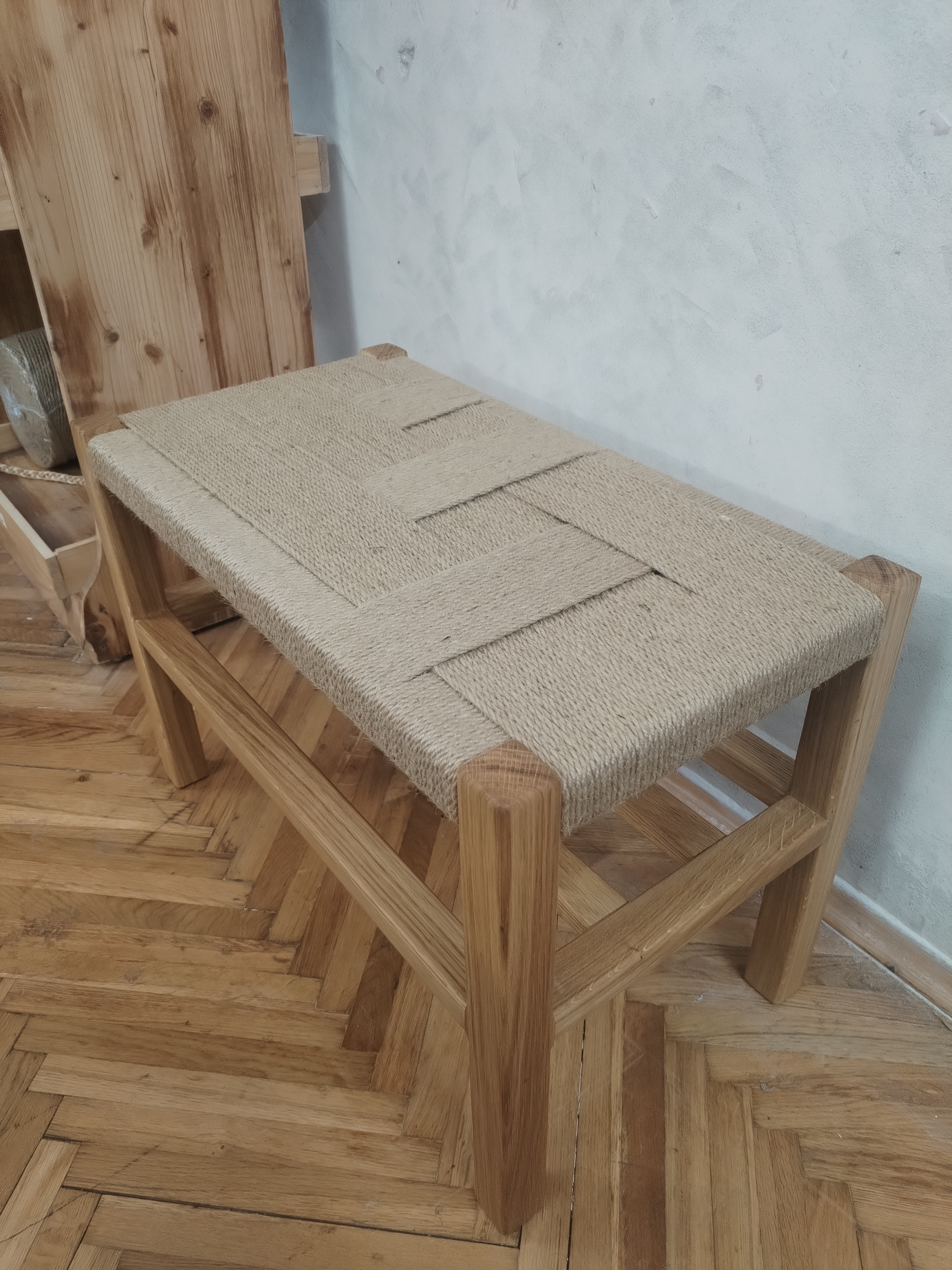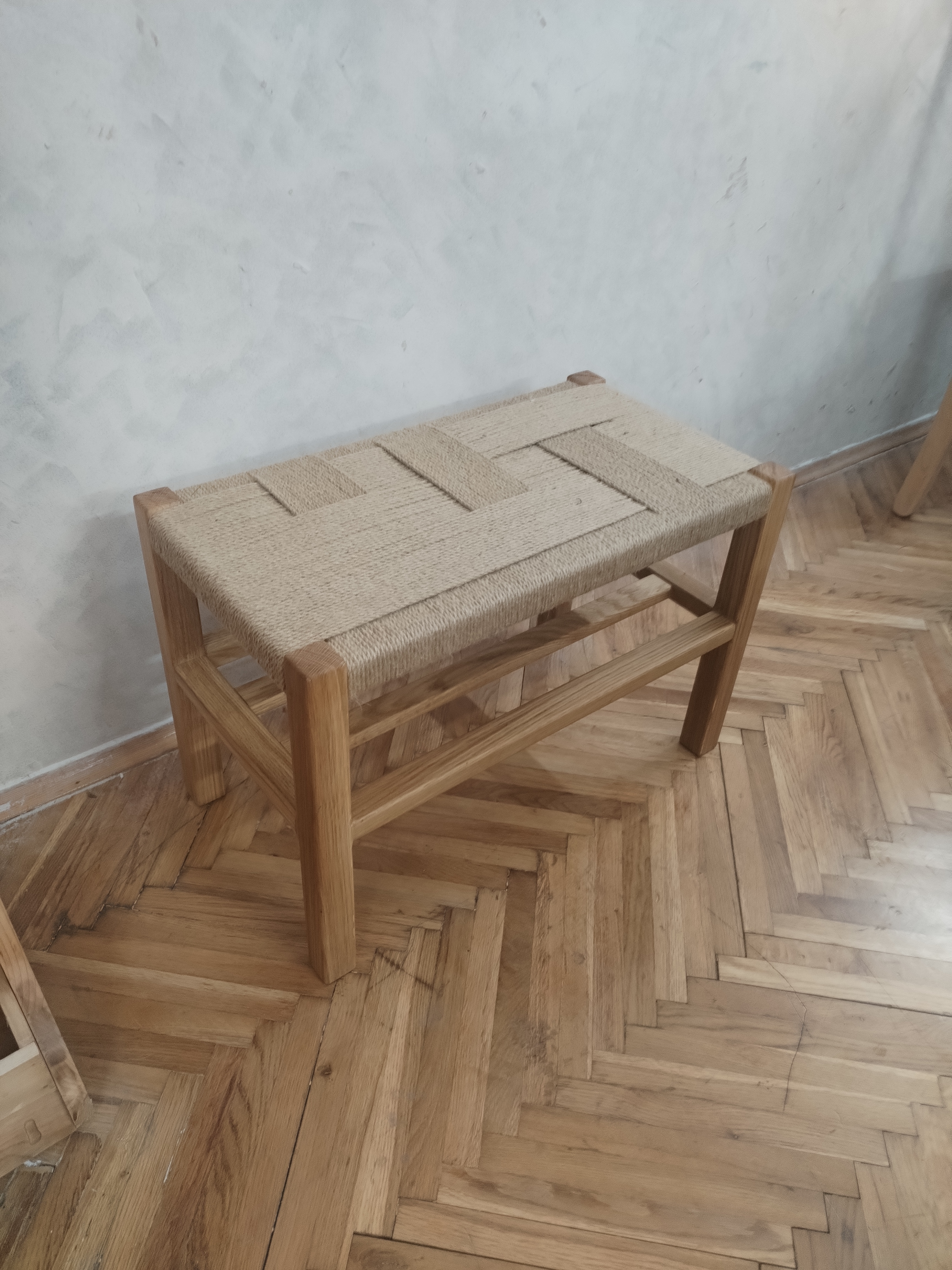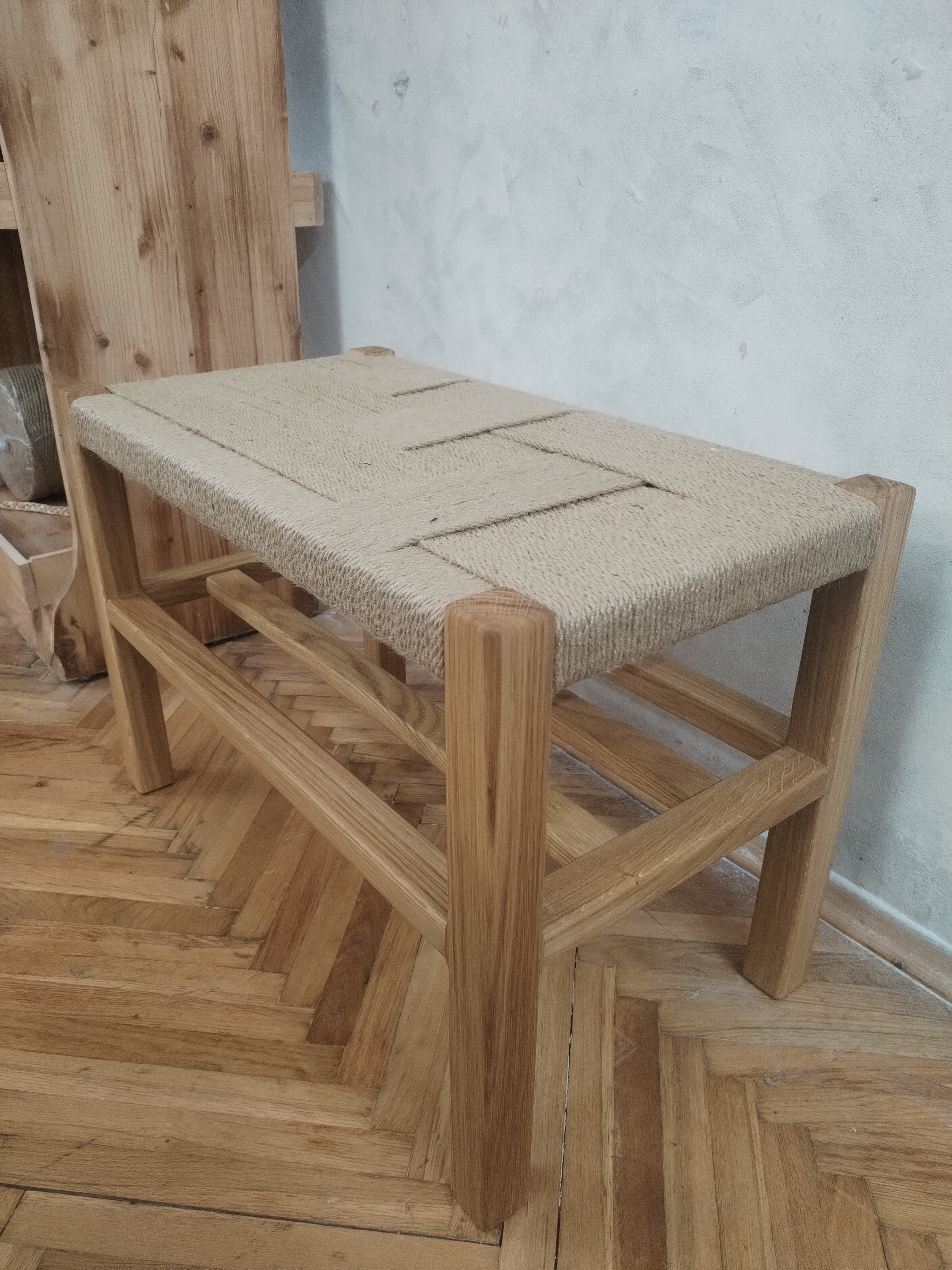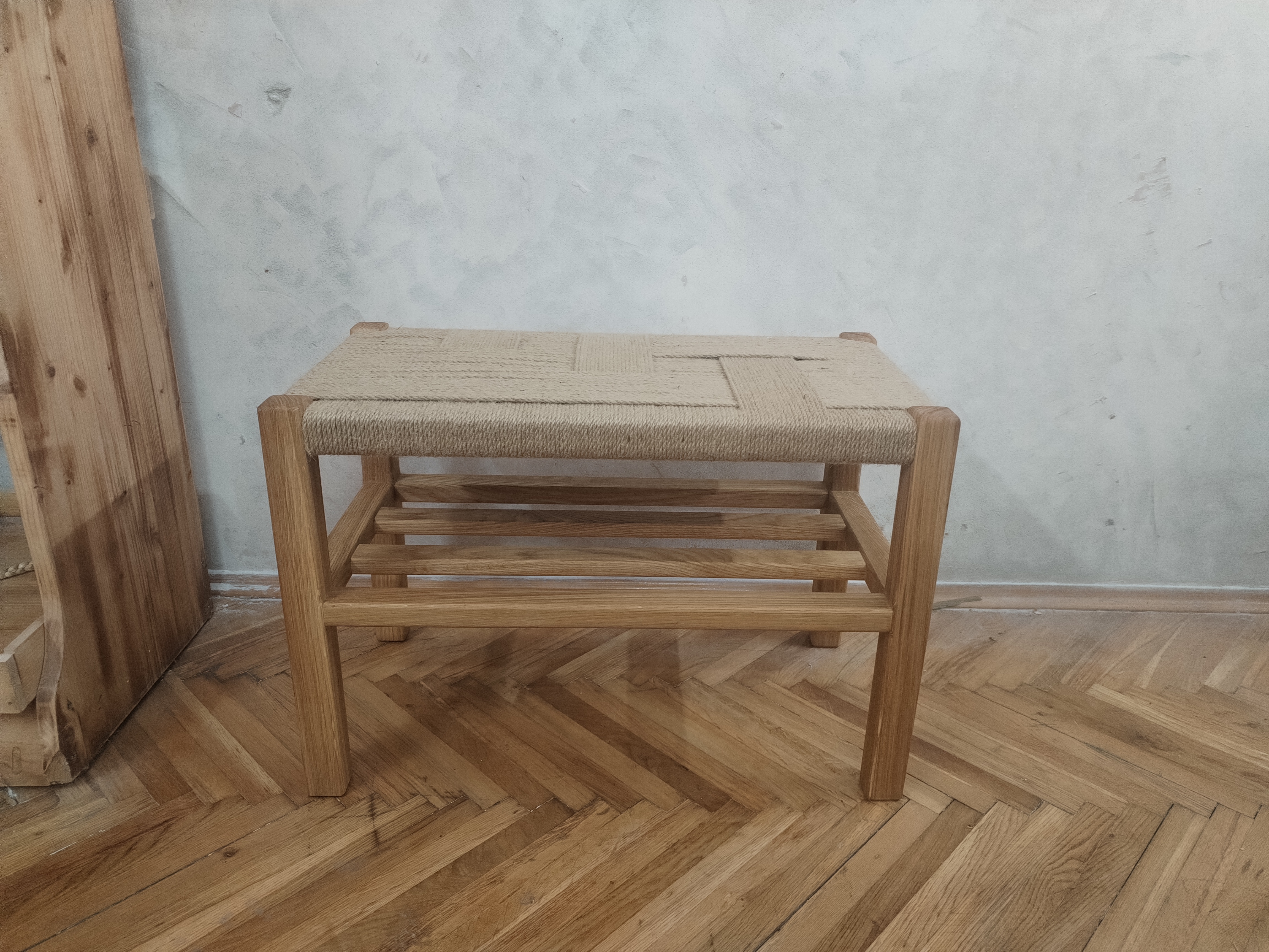 Klupa sa pletenim sedištem i policom za cioele, patike, papuče, torbe, kese, kutije… Idealna za hodnikeni terase. Cena zavisi od dimenzije klupe.