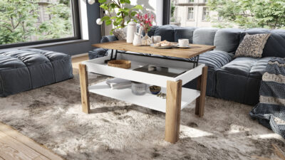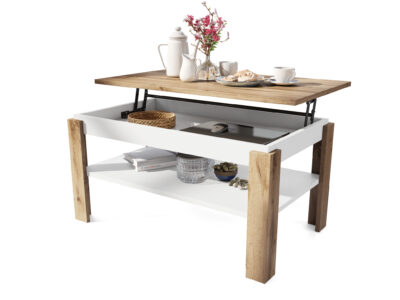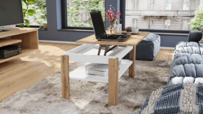 Sve je to zahvaljujući mehanizmu koji omogućava podizanje ploče stola, skrivenom u odeljku za odlaganje ispod nje, koji se takođe može koristiti za čuvanje neophodnih stvari.