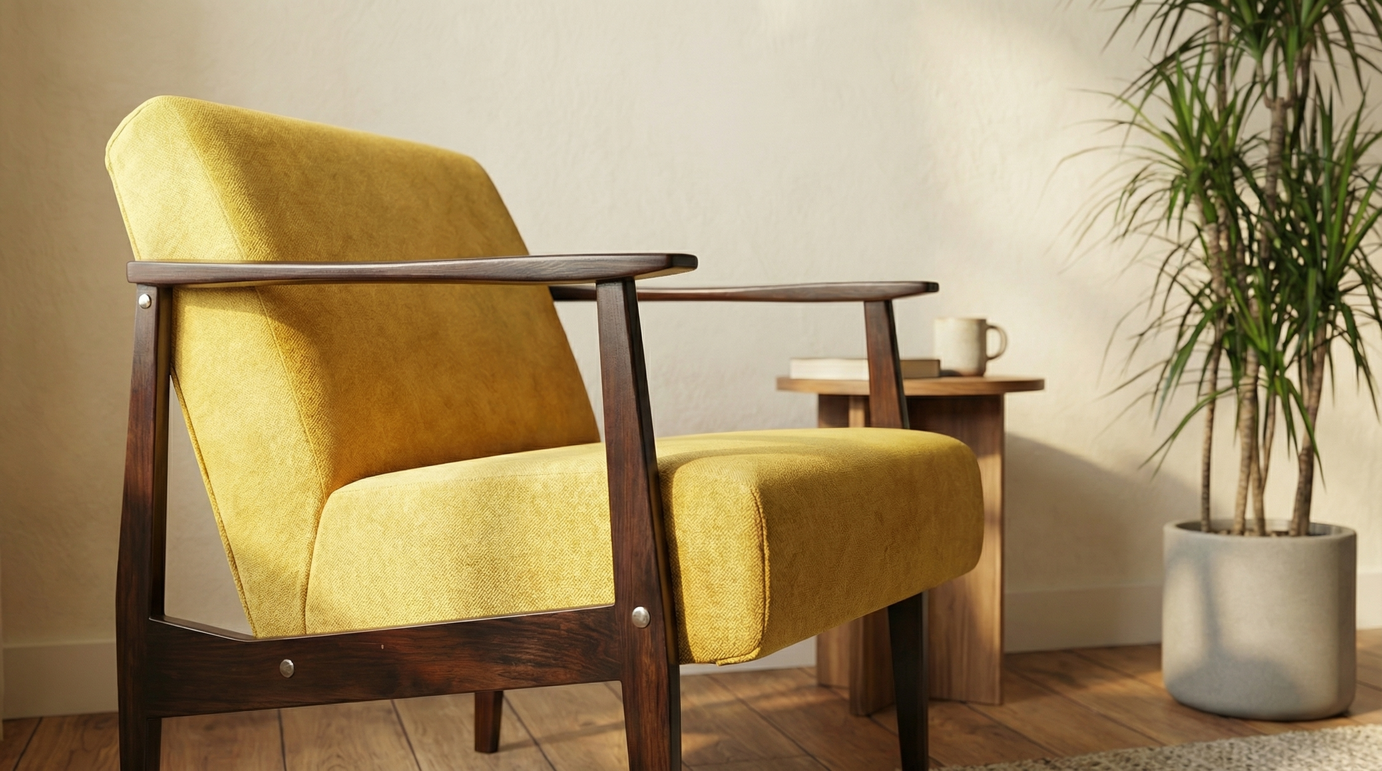 Fotelja je idealna za dnevni boravak, kancelariju, salon ili kao dekorativni retro/ mid-century komad nameštaja.