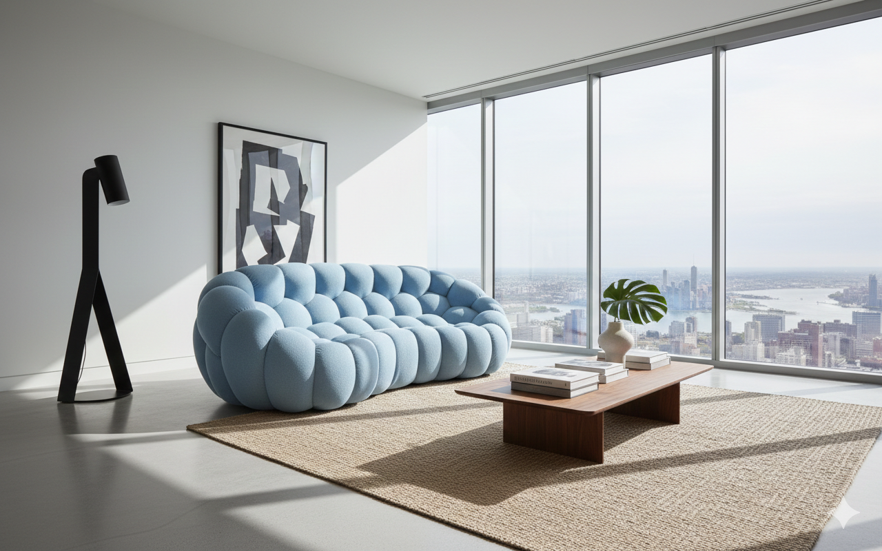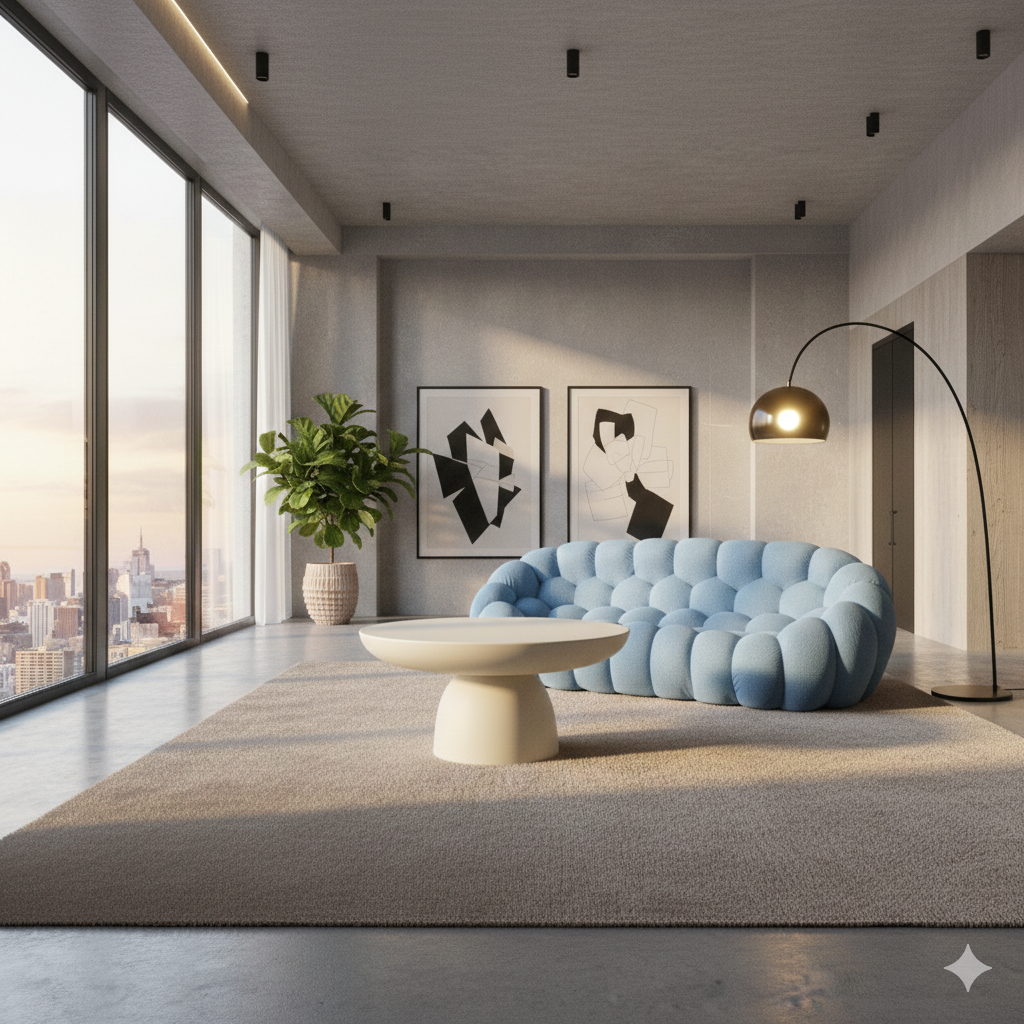 Savremena sofa u obliku oblaka predstavlja upečatljiv dodatak svakom modernom enterijeru. Njen jedinstveni dizajn, u kombinaciji sa konfiguracijom zakrivljenih linija, pruža udobno i vizuelno atraktivno mesto za sedenje. Izrađena je od visokokvalitetne tkanine koja garantuje dugotrajnost i svakodnevnu udobnost. Idealna je za kreiranje prijatnog kutka za čitanje ili elegantnog prostora za druženje, bilo u dnevnom boravku ili poslovnom okruženju.